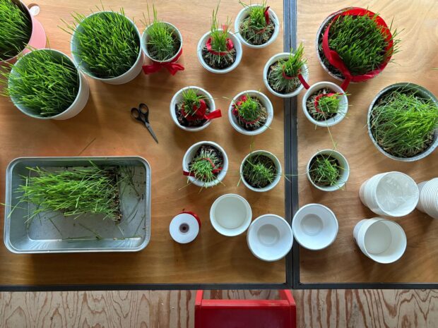 Since my residency in 2019, I have returned to Amsterdam-Noord after five years at the invitation of Framer Framed with the program ‘Bread Art in the Molenwijk’. Residents, together with 10 artists as co-residents, will conduct artistic research into bread rituals according to the process of SOWING – GERMINATION – MILL – FLOUR – DOUGH – BAKING – DEMONSTRATING – CELEBRATING. Stories are collected around dough recipes and bread as cultural heritage in all forms is explored. In recent months, DOCK, Stichting SPIN and Bakkerij de Eenvoud in collaboration with Werkplaats Molenwijk & OBA Molenwijk have worked together to create a mobile bakery. Residents are now responsible for the care and ‘BuurOven’ will move to multiple locations in the neighborhood. To start the participatory research, theologian Elsa Eikema makes two types of ancient wheat (the 7000 year old Emmer and Einkorn) available for sowing. Werkplaats Molenwijk will transform into a Bread Atelier in the coming period, where kneading, baking and tasting takes place with art & dough as a tool for dialogue. In August we will harvest the summer grain and at the end of October we will share the results as a gift and to celebrate 750 years of Amsterdam through a Bread Parade, exhibition and light installation.