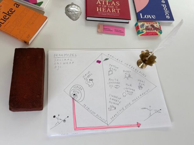Together with social designer Maurits Brans and commissioned by DJI (Dutch Department of Correctional Institutions), we are developing a participatory action research as a pilot in collaboration with penitentiary institution workers at Vught. This artistic research consists of anthropological fieldwork in combination with regenerative methods that activate imagination and creative power. The aim is to better map the undercurrent surrounding social safety collectively.